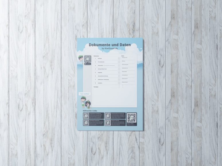 Uncool: In Neuseeland ankommen und merken, dass du ein Dokument vergessen hast. Damit dir das nicht passiert gibts unsere Checkliste. Mit Platz für wichtige Daten, so dass du in NZ immer alles griffbereit hast.