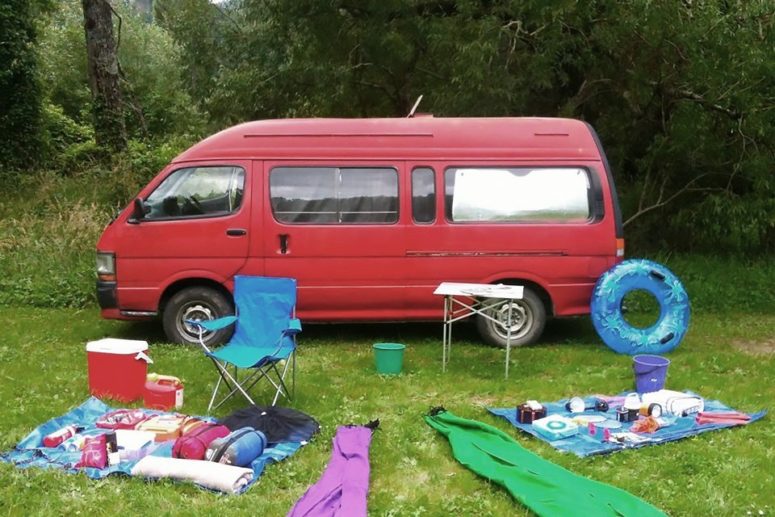 After some searching, we found a seemingly good deal from a backpacker couple: a Toyota Hiace with a bed conversion and equipment. The WOF was valid and the price was reasonable.